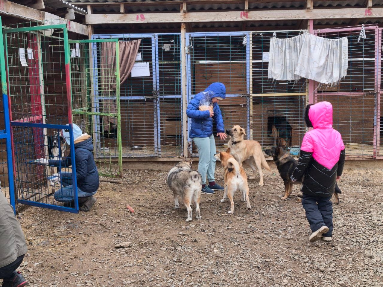 За несколько часов работы удалось обновить и покрасить решетки вольеров у подопечных приюта, погулять и насладиться обществом бескорыстных животных, а также покормить их привезенными из дома вкусностями и подарить минуту человеческого общения.