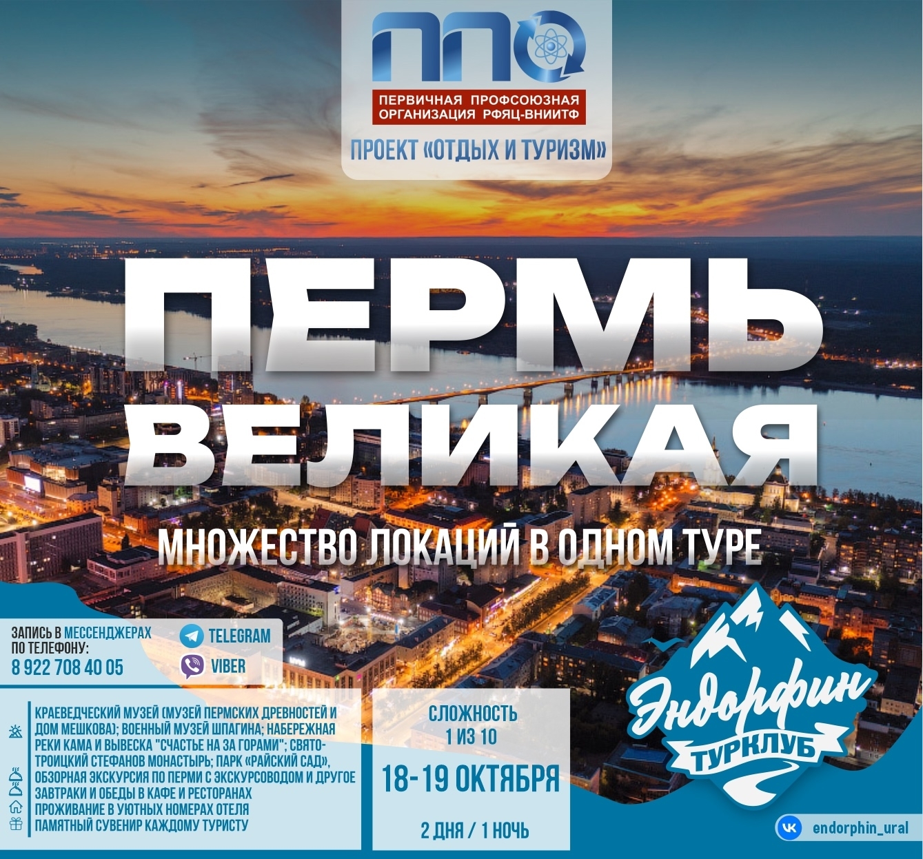 В рамках профсоюзного проекта «Отдых и туризм» состоится тур в Пермь.